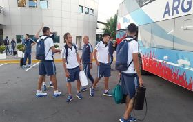 El equipo llegó a Belo Horizonte con el cuerpo técnico y un plantel de siete jugadores. Lionel Messi se sumará el martes